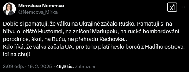 seniorTweet senátorky poustnutý na síť X